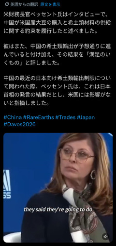 【悲報】アメリカ「中国のレアアース禁輸は高市の発言せい、うちには関係ない」