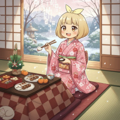 お絵描きAIくん、早速寝正月の可愛い女の子も作れる