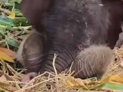 【これはカワイイ】 お母さんは隣でゴハンを食べていた。安心して眠れるね♪ → 生後7日のゾウの赤ちゃんはこんな様子です…