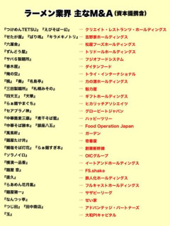 最近M&Aなどがあったラーメン業界をまとめるね