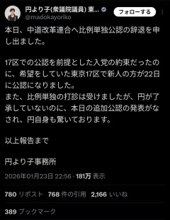 【画像】国民民主から中道に移ったお婆さん、了承していないのに勝手に中道の公認候補にされて辞退www