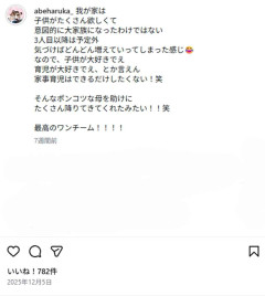 1. 匿名@ガールズちゃんねる 「母親のInstagramでは、家族との話も赤裸々につづられており、子育てに対するスタンスを語っている内容もありました。 ただ、『我が家は子供がたくさん欲しくて意図的に大家族になったわけではない 3人目以降は予定外』『なので、子供が大好きでえ 育児が大好きでえ、とか言えん 家事育児はできるだけしたくない!笑』とぶっちゃけた投稿もありました。X上でこれらが拡散されており、違和感が多数寄せられている状態です。 SNS上で炎上していることに関しては、ストーリーズで『匿名だからってあることないこと好き勝手かいてさ まじでこんな世界なのか 悲しいよ』と胸中を吐露していました。家族の問題といえばそれまでです。ただ、子どもが『長男をやるのに疲れた』と言ってしまうほど気持ちが疲弊しているという事実には、なんらかの形で向き合う必要がある、という見方が大半のようです」(同上) <関連トピ> 2026/01/24(土) 23:32:41…