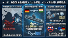 1: 名無し 2026/01/24(土) 21:15:22.48 ID:r7B9v2k6p インドは中国の100隻を超える潜水艦の脅威に対抗するため、ドイツの214型AIP潜水艦6隻の導入を最終調整中だ。80億ドル(約1兆2,660億円)規模の契約は技術移転を含める。インド海軍は旧型のロシア製を交換し、インド洋の広域作戦能力を最大化する。214型はAIPを搭載し、中国の039A型より探知が難しい「中国の潜水艦ハンター」として期待されている。 江南タイムズ ■要約 ・インドが独製214型潜水艦6隻の導入を最終調整 ・総額80億ドル規模で生産技術移転を含む大型契約 ・中国の潜水艦100隻超の脅威に対抗しインド洋防衛 ・AIP搭載で3週間の連続潜航が可能となり性能向上 ・ロシア依存を脱却し欧州との防衛協力を強化する戦略 ■解説 インドが長年のロシア依存を脱却し ドイツとの戦略的な潜水艦契約に踏み切ったことは インド太平洋のパワーバランスを左右する大きな転換点と言える。中国がパキスタンやスリランカの港湾拠点を結び インド洋への進出を加速させる中 クアッドの一角であるインドが水中防衛力を劇的に向上させることは 日本にとっても極めて大きな利益となる。 高市政権が掲げる「自由で開かれたインド太平洋」を維持するためには 日米のみならずインドが自律的な抑止力を持つことが不可欠だ。特にAIP(非大気依存推進)潜水艦による長期間の隠密行動能力は 中国の空母打撃群や潜水艦ネットワークに対する強力な牽制となるだろう。 こうした同志国間の装備・技術連携が深まることは 中国による覇権主義的な海洋進出を封じ込める多層的な抑止網の構築に直結する。日本も潜水艦技術を含む高度な防衛協力の枠組みをさらに広げ 地域の安定を主導していくべき局面だ。 中国報道官「日本の皆さんが中国に来てパンダを見ることを歓迎する」 日本「レアアースの技術開発、レアアースを使わない磁石開発を行う」→韓国人「不可能です(笑)」「世界のために必ず成功してほしい」 【ガチ動画】 好きな女の子がDQNに居酒屋のトイレに連れてかれた… ⇒ やっぱりこうなってた・・・…