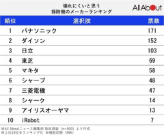 1: 警備員[Lv.63](東京都) [ヌコ] 2024/12/28(土) 10:30:47.14 ID:7KxW8Gj20● BE:837857943-PLT(17930) sssp://img.5ch.net/ico/u_utyuu.gif 第1位:パナソニック(171票) 1位に選ばれたのは、「パナソニック」です! 松下幸之助が1918年に設立したパナソニック。掃除機のラインアップは定番の紙パック式から、サイクロン式、コードレススティック掃除機、 キャニスター掃除機など、幅広い機種を取り扱っています。家族向けや一人暮らしなど、ニーズに合わせてさまざまな機能とサイズ、 価格帯から選べるので、自分に合った1台を見つけられるのではないでしょうか。 自由回答を見ると、「壊れにくくて頑丈でした、以前使っていたものは30年故障しなかった」(50代女性/静岡県)や、 「過去に使ったことがある中では長持ちしたからです」(40代男性/東京都)、「国産メーカーで歴史も長くメンテナンスも充実している」 (50代女性/広島県)といったコメントが寄せられていました。 第2位:ダイソン(152票) 2位には、「ダイソン」がランクイン! 「吸引力の変わらない、ただひとつの掃除機」のキャッチコピーでおなじみのダイソン。1986年に世界で初のサイクロン掃除機を販売開始した、 日本国内でも愛用者が多いメーカーです。優れた吸引力はもちろんのこと、水拭き対応モデルなどニーズに合わせたさまざまな 掃除機をそろえている点も同社の魅力といえるでしょう。 自由回答を見ると、「ダイソンは自宅、マキタは仕事場で使っており壊れにくいため」(30代男性/福岡県)や、「もう10年近く使っているが、 壊れない」(50代女性/東京都)、「性能がよく壊れにくいイメージがある、長く使用するのにはいいと思う」(60代女性/東京都) といったコメントが寄せられています。 引用元:…