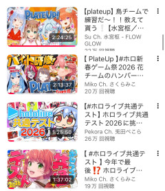 引用元: 159: Vtuberまとめ2026/01/24(土) 23:41:15.49 こんなみこち見たくなかったよ……… 共通テスト プレートアップ ゾンビ 新春ゲーム祭り 190: Vtuberまとめ2026/01/24(土) 23:42:11.58 >>159 これ全部みこちの方が同接多いですが再生数負けてます 195: Vtuberまとめ2026/01/24(土) 23:42:19.88 >>159 兎田ぺこらと比較するな 242: Vtuberまとめ2026/01/24(土) 23:43:38.07 >>159 本当に去年と真逆になったなぺこみこ 274: Vtuberまとめ2026/01/24(土) 23:44:44.35 >>159 35Pこれ言い訳まだ? 290: Vtuberまとめ2026/01/24(土) 23:45:07.09 >>159 みこち普通にスバルより人気下だろ 316: Vtuberまとめ2026/01/24(土) 23:45:55.37 >>159 格付け完了 323: Vtuberまとめ2026/01/24(土) 23:45:59.33 >>190 毎日bot買うww 341: Vtuberまとめ2026/01/24(土) 23:46:37.61 >>159 これへのレスの少なさ見るとガチで手帳効いてるんだろうな 353: Vtuberまとめ2026/01/24(土) 23:47:08.35 >>159 これまずいです 408: Vtuberまとめ2026/01/24(土) 23:48:45.93 >>159 正直どっちも弱いよな 588: Vtuberまとめ2026/01/24(土) 23:53:46.48 >>408 それはそう 597: Vtuberまとめ2026/01/24(土) 23:54:00.07 >>159 これ何気に水宮のplate upに負けてるのがヤバいよなw…