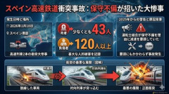 1: 名無し 2026/01/25(日) 14:23:45.18 ID:XyZ987wQ0 スペイン南部、コルドバ近郊のアダムズ付近で2026年1月18日、高速鉄道を走行していた2本の列車が衝突し、死者は少なくとも43人、負傷者120人以上という大惨事が起きた。 事故は午後7時45分ごろ発生。民間鉄道会社「イリョ」の脱線した後方車両に、反対方向から来たスペイン鉄道(renfe)の「アルヴィア」が衝突した。現地では線路の保守問題が指摘されており、2025年には運転士組合が最高速度の引き下げを要請していたことも判明している。 東洋経済オンライン ■要約 ・2026年1月18日にスペイン南部で高速列車2本が衝突する大惨事が発生 ・死者は少なくとも43人にのぼり負傷者も120人以上を記録 ・2025年には運転士組合が保守不備を理由に減速を要請していた ・脱線した車両に対向列車が突っ込むという最悪の展開となった ■解説 欧州の高速鉄道網においてこれほど凄惨な事故が起きたことは、世界の鉄道業界に大きな衝撃を与えています。特に注目すべきは、現場の運転士たちが以前から「保守の不備」を訴え、速度引き下げを求めていたという点です。インフラの老朽化やメンテナンス予算の削減が、最悪の形で表面化したと言わざるを得ません。 ひるがえって我が国の新幹線網を見れば、高市政権が進める国土強靱化や安全保障の観点からも、鉄道インフラへの継続的な投資がいかに重要かが再認識されます。近年は海外製の安価な鉄道システムが台頭していますが、安全を度外視したコストカットの末路がこれであるならば、日本が誇る「安全神話」とそれを支える技術者たちの価値を改めて正当に評価すべきでしょう。 自由民主主義陣営のパートナーであるスペインの惨状は極めて遺憾ですが、日本としては技術支援や安全基準の再構築において指導的な役割を果たすべき局面です。国民の命を守るインフラに「妥協」の文字はあってはなりません。 中道改革連合・野田共同代表「理不尽解散にノーの意思表示をしなければならない!」 生徒のJK達に圧勝してしまう女教師が見つかるww【News Headline】 【驚愕】 巨大カタツムリの ”殻だけ” を採取する方法、想像以上にエグくて震えた…(動画あり)…