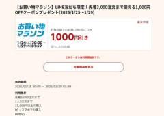 12: 名無し 2026/01/24(土) 02:49:21.10 ID:xyI+T1at 今回のLINE友だちクーポンはおいくらなのでしょうか?? 19: 名無し 2026/01/24(土) 10:50:17.35 ID:PiUTpTR/ LINE 15000-1000 3000枚…