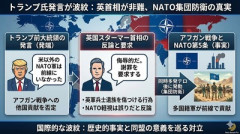 1: 名無し 2026/01/25(日) 14:38:15.22 ID:rG8kP9wZ0 アメリカのトランプ大統領がアフガニスタン戦争で「アメリカ以外のNATO軍は最前線から離れていた」などと発言したことに対し、イギリスのスターマー首相は「侮辱的だ」と反論し、謝罪を求めました。 トランプ大統領は22日、テレビ番組に出演した際、NATOについて「我々は彼らを必要としたことは一度もない」と述べたほか、アフガニスタン戦争に参加した各国の部隊について「彼らは最前線から離れていた」などと主張しました。これを受けスターマー首相は「死傷したイギリス兵の家族らを傷つけている」と反発しています。 FNNプライムオンライン(Yahoo!ニュース) ■要約 ・トランプ氏がアフガン戦争で米以外のNATO軍は前線にいなかったと発言 ・英国のスターマー首相が発言を侮辱的だと非難しトランプ氏に謝罪を要求 ・英軍兵士の遺族らを傷つける行為でありNATOを軽視するのは誤りだと反論 ・アフガン戦争は同時多発テロ後のNATO第5条発動による集団防衛だったと指摘 ■解説 トランプ氏らしい扇動的な物言いですが、同盟国としての信義を損なう危うさを孕んでいます。アフガン戦争は米国への同時多発テロを契機とした集団防衛権の行使であり、英国をはじめとする加盟国が多大な犠牲を払ったのは紛れもない歴史的事実です。こうした貢献を「最前線にいなかった」と一蹴する姿勢は、自由主義陣営の結束を内側から崩しかねません。 高市政権下の日本にとっても、同盟国アメリカの過度な「内向き」姿勢や極端なディール主義は他人事ではありません。日米同盟を安全保障の基軸としつつも、過度な依存を避け、自律的な防衛力整備を急ぐ必要性が改めて浮き彫りになったと言えます。一方で、米国の負担感に対する同盟国側の誠実な対話も不可欠であり、感情的な対立を超えた新たな協力関係の再構築が求められています。 中道改革連合・野田共同代表「理不尽解散にノーの意思表示をしなければならない!」 生徒のJK達に圧勝してしまう女教師が見つかるww【News Headline】 【驚愕】 巨大カタツムリの ”殻だけ” を採取する方法、想像以上にエグくて震えた…(動画あり)…