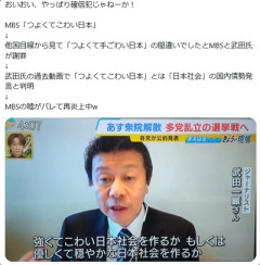 1: 名無し 2026/01/25(日) 15:08:42.12 ID:RndM9vP0k ジャーナリスト武田一顕氏の公式Xが24日までに更新され、MBSテレビが「よんチャンTV」で謝罪した内容をめぐり、武田氏の「本意ではなかった部分」を切り抜き動画として拡散されているとして、冷静な判断を求めた。 「この映像の編集やフリップのまとめ方が武田の本意ではないとして、MBSが謝罪と訂正をしました。繰り返しますが、まさに『本意ではなかった部分』です」と指摘。また、テレビ映像の2次使用は法に触れる可能性があるとして注意喚起している。 日刊スポーツ(Yahoo!ニュース) ■要約 ・MBSが番組内容を巡り謝罪した件で武田氏側が公式見解を発表 ・拡散中の切り抜き動画は武田氏の意図に反した編集部分と指摘 ・特定の意図を持ったセンセーショナルな拡散に冷静な判断を要望 ・テレビ映像の無断転載など二次使用に関する法的リスクに言及 ■解説 テレビ局側の不適切な編集やフリップの作成によって、出演者の意図がねじ曲げられて伝わってしまうという、既存メディアの危うさが露呈した格好です。放送後に局が謝罪・訂正したにもかかわらず、その「誤った内容」が切り抜かれて一人歩きする現状は、情報の受け手側にもリテラシーが求められる事態と言えるでしょう。 高市政権が放送法の遵守や公正な報道を重視する姿勢を示す中、こうした「恣意的な編集」が疑われる事案には厳しい視線が向けられています。一部のメディアが特定の政治的意図や印象操作を優先させるようでは、国民の信頼を勝ち得ることはできません。武田氏側が「法的措置」の可能性に触れつつ冷静さを求めたのは、情報の歪曲に対する正当な防衛手段と言えます。 中道改革連合・野田共同代表「理不尽解散にノーの意思表示をしなければならない!」 生徒のJK達に圧勝してしまう女教師が見つかるww【News Headline】 【驚愕】 巨大カタツムリの ”殻だけ” を採取する方法、想像以上にエグくて震えた…(動画あり)…