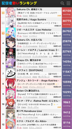 引用元: 87: Vtuberまとめ2026/01/25(日) 21:26:32.97 ホロライブ終わってない? 120: Vtuberまとめ2026/01/25(日) 21:27:18.09 >>87 暁>にじさんじ>ホロライブ 140: Vtuberまとめ2026/01/25(日) 21:27:32.25 >>87 これがカバーの望んだホロライブの形だ 152: Vtuberまとめ2026/01/25(日) 21:27:45.36 >>87 もう終わりだよ、この箱 168: Vtuberまとめ2026/01/25(日) 21:28:07.98 >>87 やっぱぺこみこいなかったらホロライブやばいやん どーすんのこの状況 169: Vtuberまとめ2026/01/25(日) 21:28:12.96 >>87 よかったなみこアン、これがお前らの望んだ世界だろ? 180: Vtuberまとめ2026/01/25(日) 21:28:22.40 >>87 もうにじやぶいすぽに普通に負ける時代 188: Vtuberまとめ2026/01/25(日) 21:28:33.88 >>87 これは歴史が動いた 192: Vtuberまとめ2026/01/25(日) 21:28:37.33 >>87 スバルの終わり際やめてね 212: Vtuberまとめ2026/01/25(日) 21:28:57.82 >>87 ぶいすぽ強えな 219: Vtuberまとめ2026/01/25(日) 21:29:03.40 >>87 ブハハハハハハハハ 223: Vtuberまとめ2026/01/25(日) 21:29:06.68 >>87 これがぺこーら政権の果実 240: Vtuberまとめ2026/01/25(日) 21:29:21.18 >>87 個人勢の通常ゲーム配信がトップです🥺 ホロ終わってます🥺…