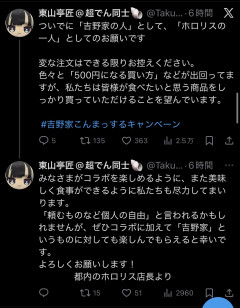 引用元: 122: Vtuberまとめ2026/01/26(月) 13:40:59.61 ホロリス民度悪すぎて苦言されてるじゃん 149: Vtuberまとめ2026/01/26(月) 13:42:00.80 >>122 は?注文してんだから客だろ甘えんな 158: Vtuberまとめ2026/01/26(月) 13:42:20.88 >>122 やっぱりホロリスってガイジばっかりなんやなぁと 160: Vtuberまとめ2026/01/26(月) 13:42:24.31 >>122 アホなポイント設定したやつが悪いよ カバー側の発案だか吉野家側の発案なんだかしらんけどな 172: Vtuberまとめ2026/01/26(月) 13:42:52.34 >>122 ケチャップのみは斬新 175: Vtuberまとめ2026/01/26(月) 13:42:59.58 >>122 おでんちゃん推しってまともな人多いの? 181: Vtuberまとめ2026/01/26(月) 13:43:12.87 >>122 ノエルナイトさあ… 187: Vtuberまとめ2026/01/26(月) 13:43:20.73 >>122 え?ケチャップ単体のみってケチャップだけで規定価格まで持っていってるの? 202: Vtuberまとめ2026/01/26(月) 13:43:51.95 >>187 せやで 203: Vtuberまとめ2026/01/26(月) 13:43:53.42 >>122 うるせーなこいつ 204: Vtuberまとめ2026/01/26(月) 13:43:55.28 >>187 そうだぞ 209: Vtuberまとめ2026/01/26(月) 13:44:10.53 >>122 雇われ店長が自我出すなよ…