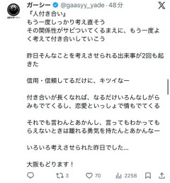 【悲報】ガーシー「信用・信頼してる人に付き合い考えさせられるようなことされた、キツいなー」