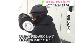 1: フィシスファエラ(栃木県) [BE] 2026/01/26(月) 17:38:37.18 ID:ID:ulFVojA20● 青森県平川市で男性10人が遭難「牧場にいる」メッセージ後に連絡取れず 警察などが午前7時半から捜索予定 きのう、平川市の山に、スノーモービルで入り、一時、遭難した8人は、無事に下山しました。遭難した人は、天候が悪くなり、暗くなったため、下山できなかったと説明しています。 一時、遭難したのは、成人男性8人です。警察によりますと、きのう午後9時半まえ、平川市切明滝の森の山で、「スノーモービルに乗りに行った人たちが帰ってこない」と、遭難者の家族から申告がありました。 現場では、けさ午前8時すぎから、警察や消防など、およそ30人が捜索にあたり、午前9時半すぎに、8人を見つけました。 ★青森放送 鮫島大史 アナウンサー 「いま、スノーモービルが、1台、2台、3台と、次々に、下山してきました」 午前11時まえに、遭難した8人全員が、自力で下山しました。けが人はいないということです。 【北海道】中国人の男が一時停止せず衝突、女※にけがさせ逃走⇒「標識の意味がわからなくて、交差点に入った」 日本で有効な免許なし マンション高騰で人気爆発「狭小住宅」のデカすぎる落とし穴……