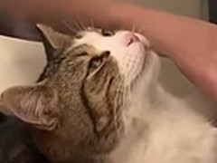床にいるネコが鳴き声を発した。額にお札を貼らないと! → 猫は一瞬こうなります…