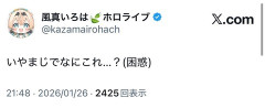 24. 名無しのリスナー ござるも見てます いやまじでなにこれ…?(困惑)— 風真いろは🍃ホロライブ (@kazamairohach) January 26, 2026 関連記事 【ホロライブ】3D罵倒牢獄ASMR、有料級の神回だったw『これアーカイブ残るんか?』 2026/01/26(月) 21:50:05.33 ID:OGpuoVRa0…