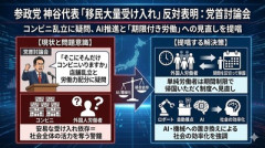1: 名無し 2026/01/27(火) 20:15:32.18 ID:KaMiYa2026 参政党の神谷宗幣代表は26日に行われた党首討論会で 外国人政策について「移民の大量受け入れは反対」とした上で 労働力不足への対応として社会全体の効率化を訴えました神谷氏は「地方や都市部に乱立するコンビニにそれだけの数が必要か」と疑問を投げかけ 単純労働を安易に外国人に委ねるのではなく AIや自動運転などの機械に置き換えるべきだと主張しています高度人材については定住の選択肢を認めつつも 単純労働については期間を限定して帰国していただく制度の見直しが必要だとの認識を示しました Yahoo!ニュース(ABEMA NEWS) ■要約 ・参政党の神谷代表が党首討論会で移民の大量受け入れに反対を表明 ・「そこにそんだけコンビニいりますか」と店舗の乱立と労働力配分に疑問 ・単純労働者は期間を区切って帰国していただく制度への見直しを提唱 ・安易な受け入れではなくAIや機械への置き換えによる社会の効率化を強調 ・外国人労働者に依存し続けることは社会全体の活力を奪うと警鐘 自分が住んでる市町村が金持ちかどうか一発でわかる画像見つけた!!! 【朗報】 コーエーテクモの女帝、まだまだ無双wwwwwww マンション高騰で人気爆発「狭小住宅」のデカすぎる落とし穴……