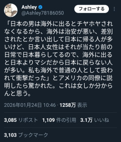 1 : 以下、?ちゃんねるからVIPがお送りします :2026/01/27(火) 10:21:28.580 ID:Bi6a+w8B0.netウソだろ…?5 : 以下、?ちゃんねるからVIPがお送りします :2026/01/27(火) 10:22:35.842 ID:z0qxgGZK0.netべつに戻らんくてもいいよ6 : 以下、?ちゃんねるからVIPがお送りします :2026/01/27(火) 10:22:41.782 ID:a29IIaee0.net日本は男尊女卑でも女尊男卑でもなく男尊女尊転載元スレッド:…