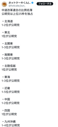 1 名前:名無しさん@涙目です。[sage] 投稿日:2026/01/27(火) 14:15:52.50 ID:XX8qSKye0 3 名前:名無しさん@涙目です。[] 投稿日:2026/01/27(火) 14:17:09.30 ID:bNjToNxr0 仕方がないじゃん 中革連・野田佳彦氏が池田大作を礼讃 これには日本共産党の小池晃氏も思わずドン引き 24 名前:名無しさん@涙目です。[sage] 投稿日:2026/01/27(火) 14:24:32.17 ID:uYhAcsWd0 立憲は公明の下僕だなw 125 名前:名無しさん@涙目です。[sage] 投稿日:2026/01/27(火) 14:51:18.92 ID:+ekRqK0t0 >>24 これって二馬力選挙じゃないの? 130 名前:名無しさん@涙目です。[] 投稿日:2026/01/27(火) 14:53:09.60 ID:Fh7SVGwT0 >>125 立憲が一方的に養分にされただけだしなあ 41 名前:名無しさん@涙目です。[] 投稿日:2026/01/27(火) 14:27:26.61 ID:1jXgzwI40 もはや養分というか苗床に等しい待遇というか 票を捧げるみたいな状態 4 名前:名無しさん@涙目です。[] 投稿日:2026/01/27(火) 14:17:29.51 ID:dk+Eu8DF0 立憲議員はゾンビ無しの一発勝負かw 実力が試されますなぁ 2 名前:名無しさん@涙目です。[sage] 投稿日:2026/01/27(火) 14:16:52.83 ID:LGLSdvzn0 立憲支持者どうすんの? 公明議員を当選させるために中道に投票すんの? 525 名前:名無しさん@涙目です。[] 投稿日:2026/01/27(火) 19:04:00.79 ID:k0zbzFkV0 >>2 そうだよアホだよ 235 名前:名無しさん@涙目です。[] 投稿日:2026/01/27(火) 15:31:39.56 ID:xU8RKT960 >>2 それこそ大義が無いだろうw 321 名前:名無しさん@涙目です。[] 投稿日:2026/01/27(火) 15:58:31.52 ID:z9nWnV3y0 >>2 色んな意味で中道に投票する意味がないんだよな 7 名前:名無しさん@涙目です。[sage] 投稿日:2026/01/27(火) 14:18:31.12 ID:oAnd07QV0 一票がお布施になるんやね 12 名前:名無しさん@涙目です。[] 投稿日:2026/01/27(火) 14:20:13.88 ID:tePgIIJ70 そもそも公明の支持者が、選挙区で素直に立憲に入れるのか疑問 立憲は公明の罠にハマったかも 195 名前:名無しさん@涙目です。[sage] 投稿日:2026/01/27(火) 15:19:28.61 ID:Q6YDeeXo0 >>12 こんなの最初から分かってた話なのになんで立憲が乗ったのか本当に謎 72 名前:名無しさん@涙目です。[] 投稿日:2026/01/27(火) 14:34:16.51 ID:sfDep0HC0 >>12 数ヶ月前まで互いに罵倒しあってたのにね 公明の罠と言うより野田が踏み絵しただけと思う 原口しか排除できなかったがほかの議員は議席欲しさに魂を売ることができる仲間と認識できた 立憲らしい生き様と思うな 56 名前:名無しさん@涙目です。[] 投稿日:2026/01/27(火) 14:31:01.44 ID:FLcK9M+j0 厚かましいよな創価学会 今の議席が24議席しかないのに 比例区で25席を上位独占とかwwww 85 名前:名無しさん@涙目です。[] 投稿日:2026/01/27(火) 14:39:41.50 ID:V3mkjftQ0 >>56 しかも新人すら立憲ベテランの上だからな 82 名前:名無しさん@涙目です。[sage] 投稿日:2026/01/27(火) 14:38:14.73 ID:Wc79ToOw0 >>56 今回一回限定の大勝利だな 次はさすがの立憲も騙されないだろうし 476 名前:名無しさん@涙目です。[] 投稿日:2026/01/27(火) 18:05:26.25 ID:hQwgqtuq0 >>56 28とか言ってたけど流石に遠慮したのかな 創価の連中とそれ以外では厚かましいの意味が違うんだろうなw ナイツ塙もねづっちの楽屋に我が物顔で入り浸るらしいしw 15 名前:名無しさん@涙目です。[sage] 投稿日:2026/01/27(火) 14:22:25.12 ID:Wc79ToOw0 どうやってこんな極端に不均衡な交渉がまとまったんだろう 公明が1枚上手、というより立憲はどんだけ無能なんだ 262 名前:名無しさん@涙目です。[sage] 投稿日:2026/01/27(火) 15:39:18.82 ID:3Fmj2hBJ0 >>15 まじで各選挙区で15000票奪えて自民50議席減を真に受けてたっぽい あんなんここでもみんなお笑い試算ってバカにしてたのに 87 名前:名無しさん@涙目です。[] 投稿日:2026/01/27(火) 14:40:00.79 ID:EiIERh/x0 >>15 立憲の比例票は衆院選から参院選で400万票以上減ってる となると次の選挙でさらに減って議席数は元の1/3の50議席程度になってもおかしくなかった しかし公明に媚売れば比例の28議席を献上したとしても 多分元立憲だけでも100議席前後は確保出来るだろうから 最悪でも元の議席の2/3程度は残せる 政治家としては最悪の決断だったが 就職活動としてみればかなりいい判断 99 名前:名無しさん@涙目です。[sage] 投稿日:2026/01/27(火) 14:43:27.02 ID:R3MK2Ikc0 >>87 就職活動としてはそうかもね そこには政治理念も政治家としての矜持も見いだせないけどw 257 名前:名無しさん@涙目です。[] 投稿日:2026/01/27(火) 15:38:28.30 ID:bIQWb9Ls0 >>87 100議席ってのが机上の空論過ぎて笑う 正直、創価や宗教は嫌われる要素でしかない 信者は知らんが、一般層が離れるのを気にしないのはアホ マジで何で受けたのやら…信者だから?くらいしか思い付かん 95 名前:名無しさん@涙目です。[sage] 投稿日:2026/01/27(火) 14:42:06.47 ID:Wc79ToOw0 >>87 それは学会員がもれなく選挙区で立憲に入れる前提だろ 入れないと思うぞ 111 名前:名無しさん@涙目です。[] 投稿日:2026/01/27(火) 14:47:19.72 ID:nh5WNkLX0 >>87 共産党と組んだ時も重複減らしたら票が増えると思ってて失敗したのに何も学んで無いよね。 233 名前:名無しさん@涙目です。[] 投稿日:2026/01/27(火) 15:31:14.00 ID:GFDRMKKo0 >>87 机上の空論では足し算でそうなるんだけども 実際には選挙目的の新党合併とバレてるか
