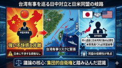 1: 名無し 2026/01/28(水) 09:42:32.45 ID:GkQ9w3nM 中国外務省の郭嘉昆副報道局長は27日の記者会見で、高市早苗首相がテレビ番組で行った台湾有事に関する発言を非難しました。高市氏は、台湾で緊急事態が発生した際に邦人退避などで米軍と共同行動を取るケースに言及しています。その際、攻撃を受けた米軍を放置して日本が撤退すれば日米同盟が崩壊すると述べ、同盟維持の観点から自衛隊が果たすべき役割の重要性を強調しました。郭氏はこれに対し、日本に台湾問題へ口出しする資格はないと反発しています。 時事通信 ■要約 ・中国外務省が台湾有事を巡る高市首相の発言に不快感を表明 ・日本側には台湾問題へ干渉する資格がないと強く非難 ・高市首相は有事の際の邦人退避と日米共同行動の必要性を指摘 ・米軍が攻撃された際に見捨てれば日米同盟が潰れると警告 ・集団的自衛権や同盟の信頼性に関わる踏み込んだ認識が議論の的に 【速報】民泊新法違反の疑い 東京新宿の民泊会社「K-Carve Life」と中国籍CEOらを書類送検 条例違反を無視し違法営業、騒音・ゴミ不法投... 次のトランプ関税で韓国が大変そう・・・ 【動画】 女芸人さん、過去出演していたA■が流出してしまう・・・…