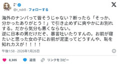 X女性さん「海外のナンパは爽やか!日本の男は恥を知れカス!」
