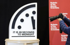 1: 終末時計「残り85秒」過去最短に 去年よりさらに4秒進む これまでの時刻の推移 1947年「7分」 1949年「3分」 1953年「2分」 1960年「7分」 1963年「12分」 1968年「7分」 1969年「10分」 1972年「12分」 1974年「9分」 1980年「7分」 1981年「4分」 1984年「3分」 1988年「6分」 1990年「10分」 1991年「17分」 1995年「14分」 1998年「9分」 2002年「7分」 2007年「5分」 2010年「6分」 2012年「5分」 2015年「3分」 2016年「3分」 2017年「2分30秒」 2018年「2分」 2019年「2分」 2020年「1分40秒」 2021年「1分40秒」 2022年「1分40秒」 2023年「1分30秒」 2024年「1分30秒」 2025年「89秒」 2026年「85秒」 【画像】飲み会でちょっと離れた席に座ってる男を一撃で刈り取る女wwwwwwwwwwwwwwww…