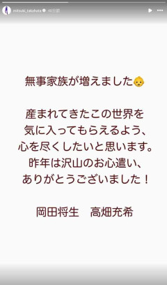 高畑充希&岡田将生、第1子の誕生を発表「心を尽くしたいと思います」ファン&関係者にも感謝の言葉つづる 24年に結婚