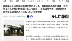 1 : 不同意わいせつ容疑で逮捕されたのは静岡市駿河区小鹿に住む歯科医師の男(49)で、2025年11月中旬、同区で自身が院長を務める歯科医院で、女性患者(20代)の診療中に自身の陰部を舐めさせた疑いが持たれています。 警察によると、男は診療を開始する際にリクライニングチェアを倒した上で、女性患者の目元をタオルで覆い、口を開けるよう指示して陰部を咥えさせたと見られています。 事件は、被害から数日後に女性患者が家族に対して診療時に違和感を覚えたことを伝え、話を聞いた家族から「娘が治療中にわいせつな行為をされたようです」と110番通報したことで発覚しました。 調べに対して、男は「その通りです」と容疑を認めているということです。 被害に遭った女性患者はこれまでにも複数回、同じ歯科医院に通院していて、「以前にも違和感を覚えたことがある」という趣旨の話をしていることから、警察は過去にも同様の行為をしていたと見て捜査しています。…