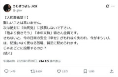 1. 匿名@ガールズちゃんねる この一連のポストに、「ごめんなさい。わからないのでお聞きします。お勧めの理由を教えてください」「気持ち悪すぎる投稿、逆効果」「『考えるな、従え。従わなければ不幸になる『という構図は、説得ではなく命令だ」「荒廃していく社会で暮らしたくないので自民に入れますわ」などの反発の声も多く寄せられた。 一方で、「表現の自由がなかなか行使出来ない不自由な業界で、よくぞ言ってくれました。これぞ本物の人間と真に尊敬致します」との声も。また、うじきの呼びかけをめぐり、自民、国民、参政の3候補しか立候補していない山口1区について「選びようがありません」、同様の香川2区についても「ひどすぎ。どうしたらいいんだ」とのポストも寄せられた。 2026/01/29(木) 11:19:19…