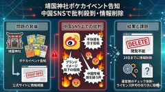 1: 名無し 2026/01/29(木) 16:58:12.45 ID:pOkE2026 東京の靖国神社で今月31日にポケモンカードの体験イベントが行われるとの情報がネット上に掲載され、中国のSNSで批判が相次いでいます。情報は「ポケモンカードゲーム トレーナーズウェブサイト」に一時掲載されていたもので、公式イベントではないものの、中国で人気の高いコンテンツが歴史的にデリケートな場所で開催されることに対し、多くのユーザーが問題視しました。29日現在、当該のイベント情報は既に削除されていますが、微博(ウェイボー)では依然としてブランドイメージへの不満や不買を訴える声が広がっています。 Record China ■要約 ・靖国神社でのポケカイベント告知に中国のSNS上で批判が殺到 ・公式サイトへの情報掲載を受けブランドイメージの低下を指摘する声 ・微博では不快感を示す言葉や中国市場への軽視を疑う投稿が相次ぐ ・当該のイベント情報は29日までに削除され閲覧不能な状態に ・運営側のチェック体制やライセンス許可の在り方を疑問視する反応 自民が単独過半数うかがう、中道は伸び悩み・国民横ばい・参政大幅増…読売序盤情勢調査 習近平「台湾統一」習近平の幼馴染「反対!」中国「北京銃撃戦!」地元民「北京の銃声を公開 【韓国】 李大統領「韓国人に手を出したら身を滅ぼすと東南アジアに積極的に知らしめよ」…