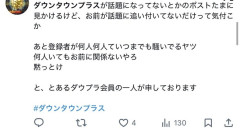 【悲報】ダウンタウンプラスの不人気さをいじられた信者、めちゃめちゃ効いてしまうwwwwww