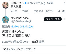 1:それでも動く名無し:2026/01/30(金) 22:33:50.91 ID:pobL9sW80.net 2:それでも動く名無し:2026/01/30(金) 22:34:38.73 ID:a0bCptVh0.net ワイはアリス好きやで…
