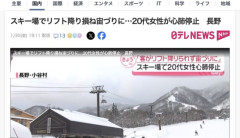 【長野】スキー場でリフト降り損ね宙づりに、20代女性が心肺停止