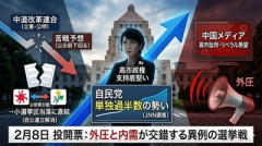 1: 名無し 2026/01/31(土) 10:12:45.67 ID:JnnTbs26 JNNの序盤情勢調査によると、自民党が単独過半数(233議席)をうかがう勢いである一方、立憲民主党と公明党による「中道改革連合」は大幅に議席を減らす可能性が出ています。戦後最短の16日間という超短期決戦の中、これまで自民を支えてきた「公明票」の行方が勝敗を左右する焦点となっています。一方、中国メディアはこの状況を注視しており、国営新華社通信などは「中道」への強い期待を表明。高市首相を「毒苗」と呼ぶなど悪意ある報道も交えつつ、彼女の敗北と退陣を期待する論評を配信しています。 TBS NEWS DIG / Yahoo!ニュース ■要約 ・JNN調査で自民が単独過半数の勢い。高市政権への支持が底堅い結果に ・新党「中道改革連合(立憲・公明)」は公示前を大きく下回る苦戦予想 ・自公連立解消に伴う「公明票の分散」が小選挙区の当落に直結する見通し ・中国メディアは高市首相を猛烈に批判し、リベラル勢力の台頭を熱望 ・2月8日の投開票に向け、外圧と内需が交錯する異例の選挙戦が続く 外国人留学生へのひらがな授業動画に批判殺到 → ネット「ここからレベルなん?」「この費用は税金?」「高度人材w」「仕事できるまでに何年かかるの?... 入管庁、民主党政権下で日弁連と合意した「強制送還前の弁護士宛通知」逃亡が相次いだため廃止 → 日弁連が抗議「裁判を受ける権利の侵害」 【衆院選】 東国原英夫さん、ついに『カミングアウト』をしてしまう!!!!…