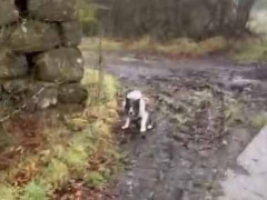 ワンコに ペンのインクの匂いを嗅がせる。 ほら、取ってこい! そのペンを林の中に投げてみたら こんな感じ……