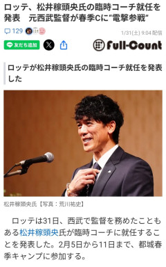 ロッテ、松井稼頭央氏の臨時コーチ就任を発表 元西武監督が春季Cに“電撃参戦”