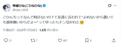 1: 2026/01/31(土) 11:15:52.41 こひんちってなんで時計ないの?て友達に言われて"よめないから置いても意味無いからだよ〜"ってゆったらドン引かれた😵💫— 琴雛ひな(こひなひな) (@nya_n319) January 30, 2026 ※関連記事 【画像】この漫画の「ダメ人間」と付き合っている彼女の話、少し怖くて草wwwww…