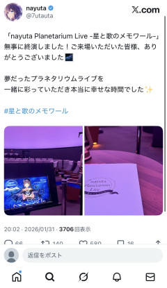 引用元: 27: Vtuberまとめ (ワッチョイ 7f1b-DKLG) 2026/01/31(土) 22:46:06.48 ID:gY47QwWc なゆた社長…😍 好きだ…😍 ちなお召し物そのまんまこれ 37: Vtuberまとめ (ワッチョイW de8e-VWsh) 2026/01/31(土) 22:46:57.31 ID:wtKU5EoM >>27 nayutaて本人でてくんの? 39: Vtuberまとめ (ワッチョイW a722-uriS) 2026/01/31(土) 22:47:18.68 ID:7jthxIxo >>37 出てくるぞ 撮影はもちろんできないが 43: Vtuberまとめ (ワッチョイ c9f9-VqL9) 2026/01/31(土) 22:47:57.64 ID:ZDbsbOHp >>39 え!?生nayuta見れるの!? 50: Vtuberまとめ (ワッチョイW de8e-VWsh) 2026/01/31(土) 22:48:29.75 ID:wtKU5EoM >>39 禁止なの?なんで? ライブて動画じゃなく写真もngなんだっけ? 52: Vtuberまとめ (ワッチョイ aaf9-DKLG) 2026/01/31(土) 22:48:49.12 ID:2eArfM4w >>43 そらそうよ 今年は無理だったけど昨年のなゆふぁんみは目の前で良かったぞ 54: Vtuberまとめ (ワッチョイW a722-uriS) 2026/01/31(土) 22:49:00.70 ID:7jthxIxo >>43 昔は現地ライブなら顔隠さずに歌ってたぞ🥰 今は目元に仮面つけてたりするよ 67: Vtuberまとめ (ワッチョイW a722-uriS) 2026/01/31(土) 22:49:42.88 ID:7jthxIxo >>50 少なくとも僕が行ったやつは撮影は禁止されていたんだ🥺…