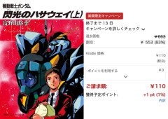 Kindleストアでアニメ監督・富野由悠季氏によるノベライズ版「機動戦士ガンダム 閃光のハサウェイ」上巻が110円(83%OFF)になりましたよ! 中下巻はそれぞれ50%OFF。映画もまだ第3部を残してるので小説を先に読んだほうがいいのかどうなのかと思う部分もありますが、めちゃくちゃ売れてますね。現時点でKindleランキング堂々1位になりました。 ちなみに管理人は、アニメ放映の世代ではなかったこともあって、高校生の頃ファーストガンダムに初めて触れたのは小説版のほうでした。アニメ版と違いえちえちシーンがあったり何よりラストのアムロの処遇が違うなど、後にアニメを観たときその違いに驚きましたが、小説版には宇宙世紀ならではの人種の混血の深さが書かれているなど小説ならではの細かい描写があるため、それを予備知識として楽しみながら観れたので結果的に小説が先でアニメが後でも全然よかったと思ってますლ(╹◡╹ლ) 機動戦士ガンダム 閃光のハサウェイ(上)富野 由悠季 (著), 美樹本 晴彦 (著)価格:110円 83%OFF人類が、増えすぎた人口のはけぐちを宇宙に求めてから一世紀以上が経った。シャア・アズナブルが起こしたネオ・ジオン抗争をくぐり抜け、ハサウェイ・ノアが体験する新たな戦いとは……。ミノフスキー・クラフトを搭載したΞ(クスィー)ガンダムが、紺碧の空に乱舞する! クリックして今すぐチェック 機動戦士ガンダム 閃光のハサウェイ(中)富野 由悠季 (著), 美樹本 晴彦 (著) 価格:347円 50%OFFハサウェイ・ノアは、スペースシャトルのハイジャック事件を通して、少女ギギ・アンダルシアと出会う。地球に降り、マフティーの本隊と合流したハサウェイは、最新鋭MSのΞ(クスィー)ガンダムを受け取るが、そこには対マフティー部隊のケネス大佐が迫りつつあった── クリックして今すぐチェック 機動戦士ガンダム 閃光のハサウェイ(下)富野 由悠季 (著), 美樹本 晴彦 (著) 価格:347円 50%OFF連邦のケネス大佐は新型MSペーネロペーを入手。さらに少女ギギと同行することでマフティーにプレッシャーをかける。ハサウェイを想ってケネスのもとを離れるギギだが、そこには悲劇が待ち受けていた……。富野由悠季が織りなすオリジナル・ガンダム小説、衝撃のクライマックス! クリックして今すぐチェック あとは本作に関係はないですが、昨年公開されたばかりの『機動戦士ガンダム 鉄血のオルフェンズ ウルズハント -小さな挑戦者の軌跡-』がプライム見放題になりました!こちらもよければぜひ! 特別編集版『機動戦士ガンダム 鉄血のオルフェンズ ウルズハント -小さな挑戦者の軌跡-』 created by Rinker 再生する 楽天市場 【定期】超低価格帯セール Kindleの投げ売り超低価格帯セール!対象作品は不定期で変更されています。 ●【セール】11円コミック ●【セール】33円コミック ●【セール】55円以下コミック ●【保存版】31%以上還元 コミック ↑ザックリと「なんかセールしてるかも」をチェックするのに便利な恒常URLです。ブクマしとくと便利です。管理人も毎日夜とかに流し見しています。…