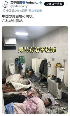 1:2026/02/01(日) 12:07:16.36 ID:lcumApTF0中国穷人现状。这就是中国。 pic.twitter.com/IOKRCCGm5t— 芙宁娜娜💙Furinana (王者归来版) (@satireorcry1) January 31, 2026転載元スレッド:…