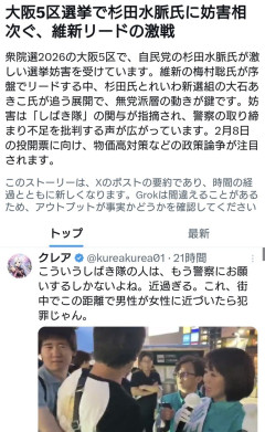 大阪5区選挙で杉田水脈氏に妨害相次ぐ、維新リードの激戦