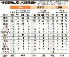 自維300議席超うかがう 中道半減も 参政・みらい勢い 朝日調査 2月8日投開票の衆院選(定数465)について、朝日新聞社は1月31日から2月1日にかけ、約37万人を対象に電話とネットによる調査を実施し、取材情報も加えて中盤情勢を探った。①自民党は単独で過半数(233議席)を大きく上回る勢いで、日本維新の会とあわせて与党として300議席超をうかがう②中道改革連合はふるわず、公示前勢力(167議席)から半減する可能性もある③国民民主党はほぼ横ばい④参政党、チームみらいが躍進――などの情勢となっている。 ※詳しくは下記リンクより 関連記事 【悲報】自民コバホーク政調会長「このままでは日本は二流国家に転落してしまうかもしれない」 【悲報】社民・ラサール石井副党首、サナエ推しの若者は「自民党が何してるか知らなくても入れちゃう」「そういうセコいことをする」 【速報】自民党、衆院選で単独3分の2以上議席確保の可能性浮上wwwwww 【悲報】百田尚樹「Jiminto(自民党)からJapanのJを抜いたらiminto(移民党)じゃね?」 「高市人気」で自民に勢い、中道は「公明票」見通せず…読売序盤情勢調査 【画像】飲み会でちょっと離れた席に座ってる男を一撃で刈り取る女wwwwwwwwwwwwwwww…