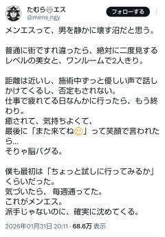 1:それでも動く名無し:2026/02/01(日) 09:55:22.48 ID:D2OJB4qa0.net 2:それでも動く名無し:2026/02/01(日) 09:56:40.85 ID:GyhMmZ+P0.net 毎週はヤバい そのうち飽きるやろ 3:それでも動く名無し:2026/02/01(日) 09:56:52.31 ID:8yypUdcH0.net 抜きあり? 87:それでも動く名無し:2026/02/01(日) 10:32:07.64 ID:ulh/5klk0.net >>3 店にもよる…