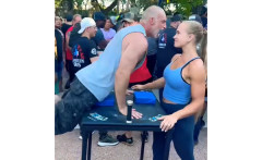 【海外】女性腕相撲選手を威嚇した男が一瞬で負ける映像が話題にw