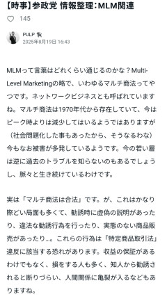 1: 名無しのスコールさん 2026/02/01(日) 21:33:12.67 ID:6vXa2oUSr 【時事】参政党 情報整理:MLM関連|PULP 🐈⬛ 引用元: ・…