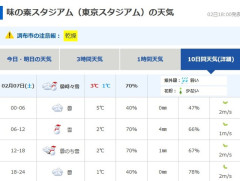 ◆悲報◆J1開幕戦FC東京×鹿島開催の味の素スタジアム、2月7日の天気は雪😭