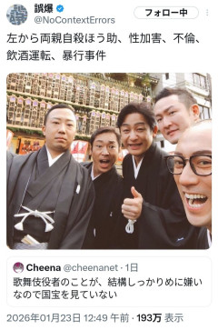 引用元: それでも動く名無し 2026/01/23(金) 21:46:46.35 ID:SLtybAg00 2: それでも動く名無し 2026/01/23(金) 21:47:22.71 ID:dx+RbGBv0 不倫が可愛いな 3: それでも動く名無し 2026/01/23(金) 21:47:29.22 ID:IZI4eT/30 芸能人みんなそうやろ…