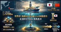1: 名無し 2026/02/03(火) 09:46:35.77 ID:R1e8A7rS0 日本が東京から1800キロ余り離れた海底で、レアアース(希土類)を含む泥の試験掘削に成功したことが分かりました。海洋研究開発機構(JAMSTEC)の探査船「ちきゅう」が、南鳥島沖の水深約5700メートルの深海から泥を引き上げたもので、海底6000メートル級からの採掘は世界初の試みです。推定埋蔵量は1600万トン相当とされ、中国による資源の外交カード化に対抗する国産化に向けた大きな一歩となります。 Yahoo!ニュース(朝鮮日報日本語版) ■要約 ・南鳥島沖の水深約5700メートルでレアアース泥の試掘に成功 ・海底6000メートル級からの採掘は世界初の試み ・推定埋蔵量は1600万トン相当で世界3位の水準に匹敵 ・中国によるレアアースの外交カード化に対抗する国産化の柱 ・2028年3月までに採算性を含む事業性報告書を完成させる方針 【!】 高市総理、腕を引っ張られた瞬間の映像がヤバ過ぎるとネットで話題に → 体が宙に浮くほど引っ張られ手首を押さえ笑顔で対応 ……… 会津若松の女子中学生を土下座させ顔面蹴り暴行事件、動画拡散で警察が捜査開始か → 両親「警察に... 【速報】 金価格が急落 3500円以上も値下がり ストップ安で「サーキットブレーカー」発動 先物売買を一時的に中断…