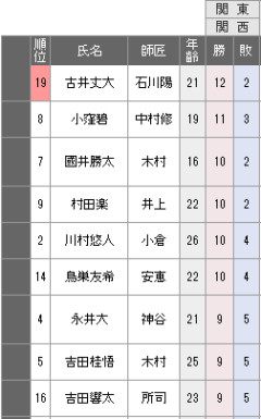 【三段リーグ】古井三段が12勝2敗に