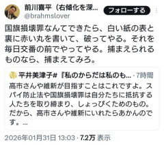 1 名前:名無しさん@涙目です。[sage] 投稿日:2026/01/31(土) 19:12:53.10 ID:VceFd3L+0 5 名前:名無しさん@涙目です。[sage] 投稿日:2026/01/31(土) 19:14:19.32 ID:cJluw6qL0 それ国旗とちゃうんじゃね 6 名前:名無しさん@涙目です。[] 投稿日:2026/01/31(土) 19:14:25.03 ID:10ox0pZ00 そんなセコい真似しないで国旗を買ってきて破けやヘタレ 52 名前:名無しさん@涙目です。[] 投稿日:2026/01/31(土) 19:25:02.65 ID:rt8RnFxr0 >>6 ホントだよなw 262 名前:名無しさん@涙目です。[sage] 投稿日:2026/01/31(土) 20:20:52.94 ID:ozISFXjn0 白い紙に赤い丸描いてあったら日本国旗というくらいの認知能力しかないのか 272 名前:名無しさん@涙目です。[sage] 投稿日:2026/01/31(土) 20:24:28.46 ID:94BHdXDt0 >>262 コイツ紙に赤丸描いたものは嫌いだが生理ナプキン好きそうな面してるよなw 10 名前:名無しさん@涙目です。[] 投稿日:2026/01/31(土) 19:15:04.21 ID:RSem3dKz0 国旗と違ってもいいじゃねえか 本人が毎日交番の前でやるってんだからやらせてやろうぜ 263 名前:名無しさん@涙目です。[] 投稿日:2026/01/31(土) 20:21:00.97 ID:A+m6rFvD0 >>10 こいつと同レベル 「警察官の前でわざと白い粉落としてみた」 迷惑YouTuberを偽計業務妨害の疑いで逮捕 142 名前:名無しさん@涙目です。[] 投稿日:2026/01/31(土) 19:44:21.46 ID:t+VnzUJa0 毎日交番の前で?それ業務妨害にならないんかな 150 名前:名無しさん@涙目です。[] 投稿日:2026/01/31(土) 19:46:37.84 ID:8T9vAN8C0 >>142 たしかに別の罪になりそうだな 94 名前:名無しさん@涙目です。[] 投稿日:2026/01/31(土) 19:33:38.90 ID:M2tPupCE0 警察以前に殴られる襲われるかもという身の危険を全く想像できないんだなお勉強ばかりしてきた世間知らずだな 12 名前:名無しさん@涙目です。[sage] 投稿日:2026/01/31(土) 19:15:47.13 ID:h01sL2s50 公務で売春してたのになんでこいつは捕まらないの 60 名前:名無しさん@涙目です。[] 投稿日:2026/01/31(土) 19:27:45.27 ID:frmZOcl10 警察が出会い系バーの内偵進めてたらたまたまこの人引っかかったんだよね 絶対に余罪あるよね 79 名前:名無しさん@涙目です。[] 投稿日:2026/01/31(土) 19:31:48.82 ID:kus7GdPd0 >>60 公用車で出動しとったんよな 68 名前:名無しさん@涙目です。[] 投稿日:2026/01/31(土) 19:30:09.55 ID:kDqVb/KB0 >>60 夜間中学で貧困調査対象を物色してたりしてたよ 294 名前:名無しさん@涙目です。[sage] 投稿日:2026/01/31(土) 20:33:27.95 ID:KpTD0pSj0 >>60 確か摘発しようとしたら事務次官がいて警視庁が困ってしまったらしい 97 名前:名無しさん@涙目です。[] 投稿日:2026/01/31(土) 19:34:17.30 ID:2GjDsdOI0 このキチガイが一族七光りだけで教育を司る文科省事務次官になってたという恐怖 11 名前:名無しさん@涙目です。[sage] 投稿日:2026/01/31(土) 19:15:18.26 ID:g6F/Xaz+0 こんなのが文科省のトップにいたとか、日本の汚点でしかない 245 名前:名無しさん@涙目です。[] 投稿日:2026/01/31(土) 20:15:27.36 ID:t53CU+qG0 >>11 ほんコレ… 情けねーオッサンだわ 37 名前:名無しさん@涙目です。[] 投稿日:2026/01/31(土) 19:20:58.52 ID:2l9Qz82U0 この人が何してきた人かまとめてよ 貧困調査しかしらん 47 名前:名無しさん@涙目です。[] 投稿日:2026/01/31(土) 19:24:16.97 ID:mPqj2m0C0 >>37 夜の学校で授業(意味深) NHK社長に名乗り出る パヨクのオピニオンリーダー 統一教会の名称変更を許可 57 名前:名無しさん@涙目です。[] 投稿日:2026/01/31(土) 19:26:37.40 ID:mPqj2m0C0 >>47 発狂して意味不明な発言をした議事録が残っている、もあったな 482 名前:名無しさん@涙目です。[] 投稿日:2026/01/31(土) 22:04:02.16 ID:BuAcmys00 スパイ防止法に反対するスパイと同じで国旗損壊罪に反対する在日 分かりやすいね 219 名前:名無しさん@涙目です。[] 投稿日:2026/01/31(土) 20:09:13.66 ID:Y0DyRu150 妹が中曽根家に嫁いでるから色々な暴言も含めそれで許されてる面もありそう 50 名前:名無しさん@涙目です。[sage] 投稿日:2026/01/31(土) 19:24:32.92 ID:vTLmhcDM0 中曽根家で始末してくれ マジで中曽根家は製造責任取れよ 東京貧困女子。759円…