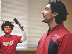 カープ・ターノックが節分豆まき初体験!自慢の剛速球で鬼退治!!